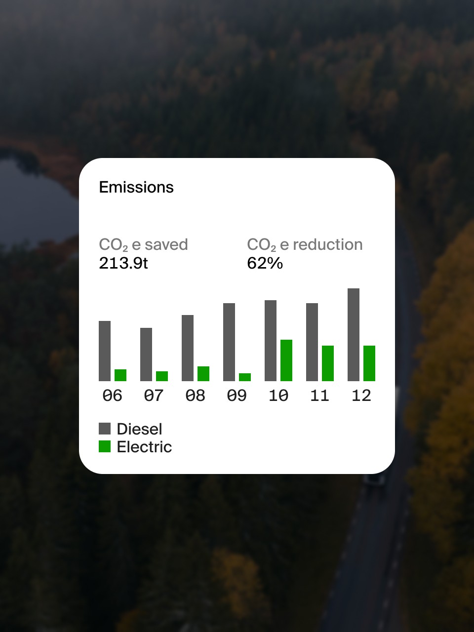Emission reports need to be exact if you want to improve performance, apply for government subsidies or disclose your CO₂e data. That’s why we’ve built a digital reporting system that compiles key insights about fleet performance, emissions and energy usage in real time.