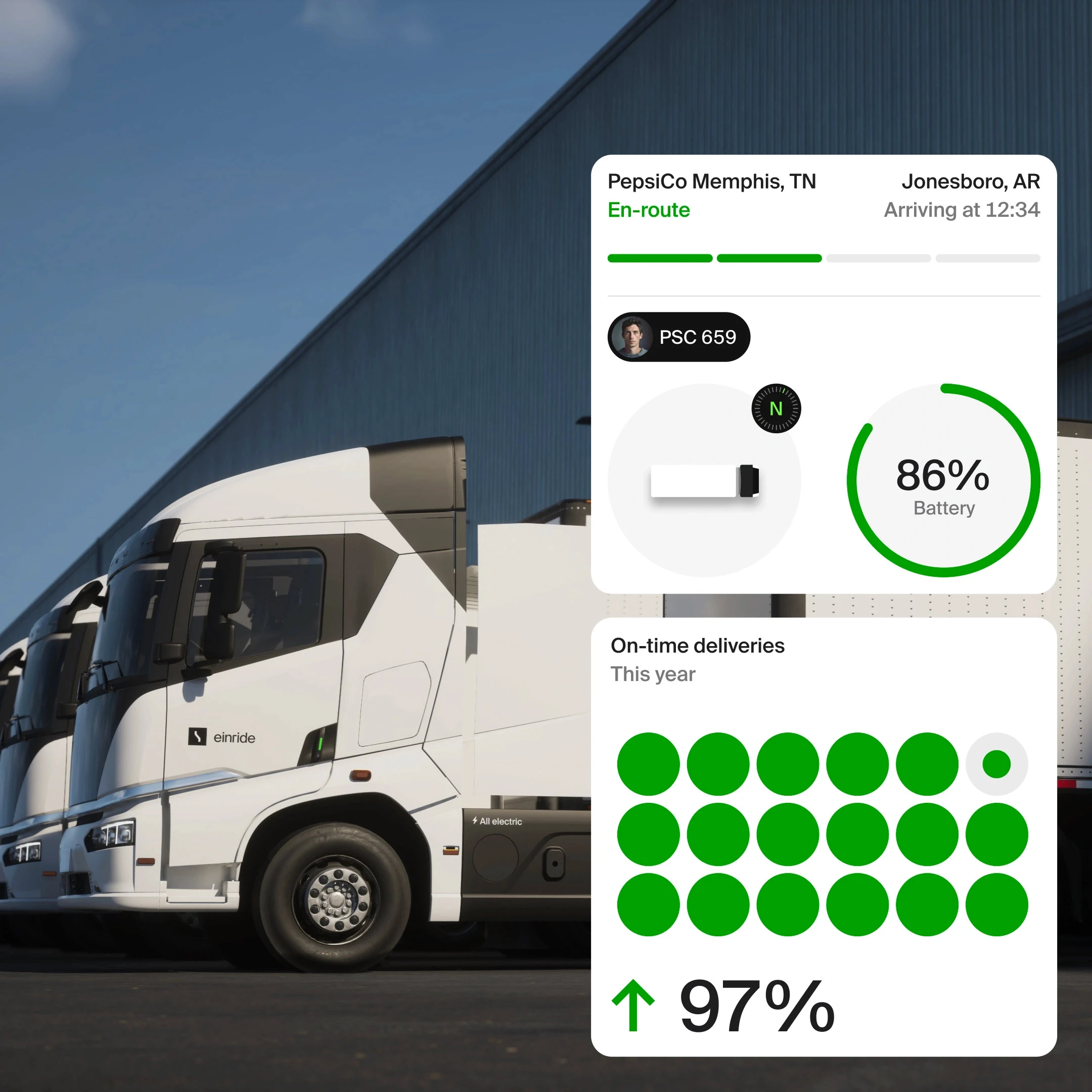 Since 2020, Einride has been operating electric large-scale fleets and setting the standard for sustainable freight, helping partners reduce their emissions by up to 95%. As an industry leader, Einride offers shippers a cost-efficient way to transition to sustainable operations by providing an integrated ecosystem of software and hardware.
